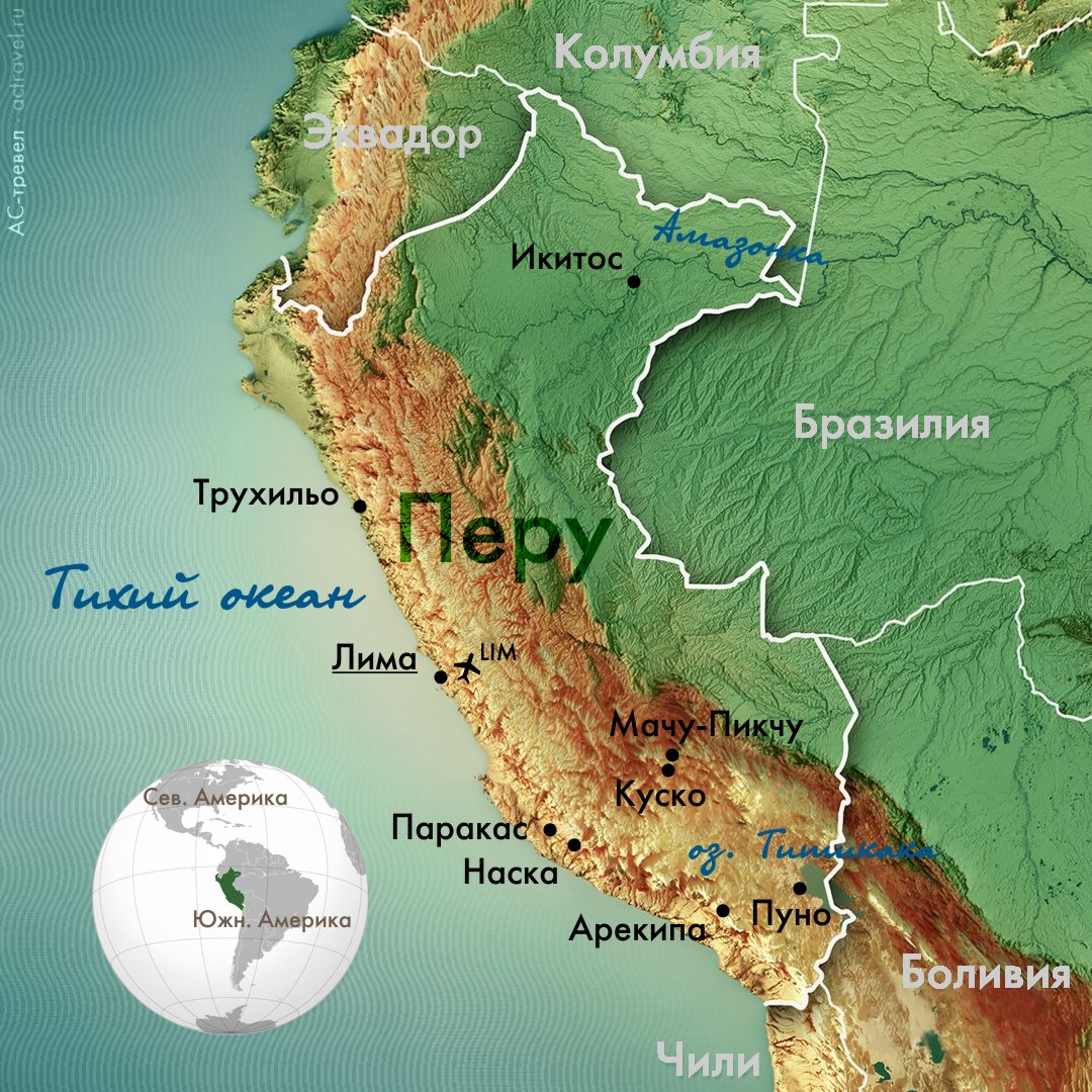 Перу — это удивительная страна в Южной Америке, которая славится своими древними цивилизациями, великолепными пейзажами и уникальной культурой. Здесь можно увидеть древние инковские города, мистические леса Амазонии, высокогорные плато Анд и традиционные индейские поселения.
